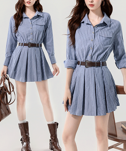 - 클래식 투피스 같은 심플 니트 주름원피스 / 벨트 포함( 리뷰 : 0 )