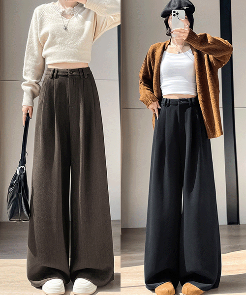 - 기모 선택 / 셰릴 투핀턱 헤링본 모직 와이드 팬츠( 리뷰 : 0 )