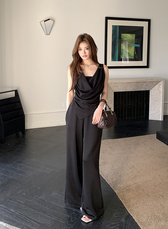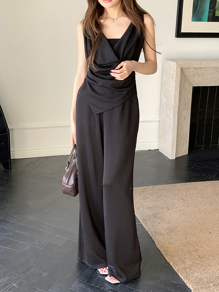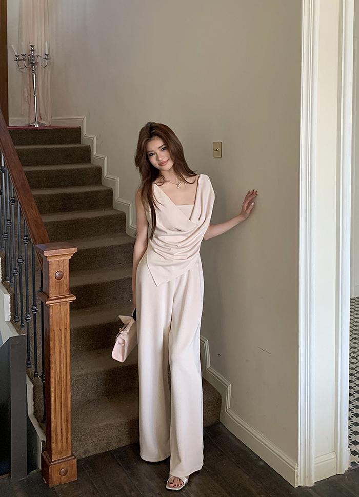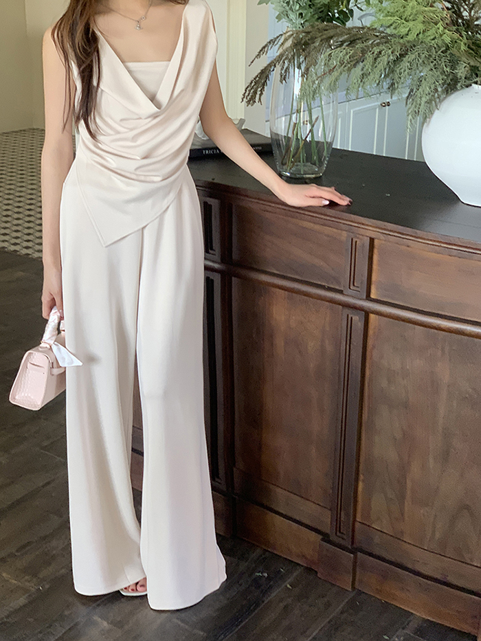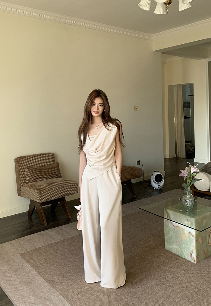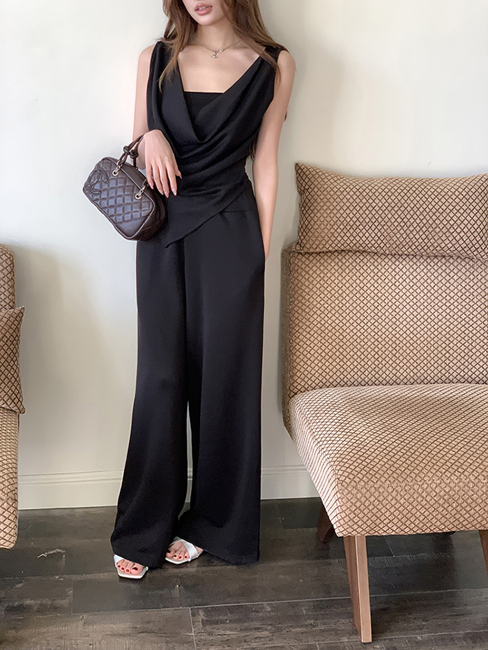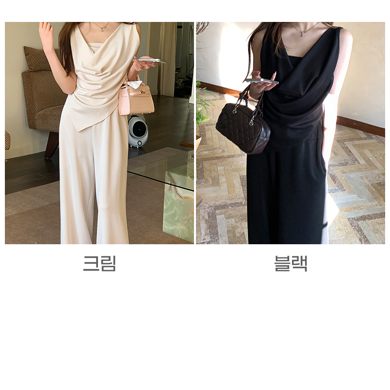 SIZE탑Free 55~66 : 가슴 88~ / 총길이 45~59 cm팬츠Free 55~66 : 허리(밴딩) 60~ / 총길이 97 cmFABRIC폴리, 코튼, 스판신축성보통 / 두께감보통 / 비침보통초반 드라이클리닝 권장