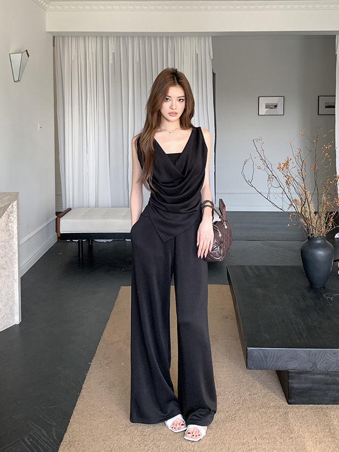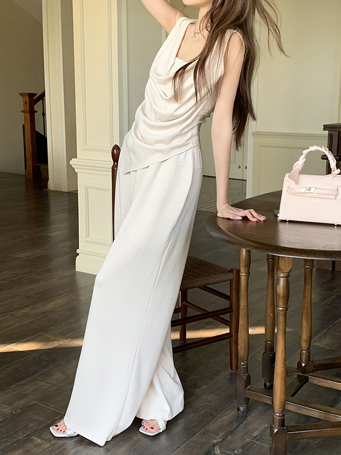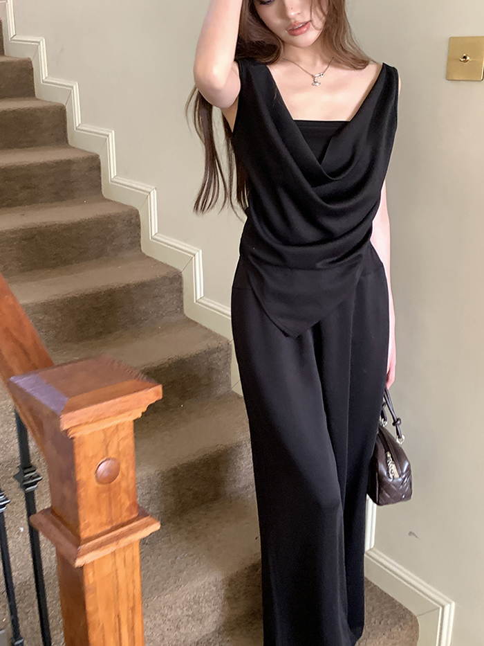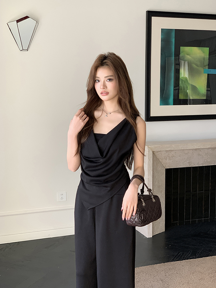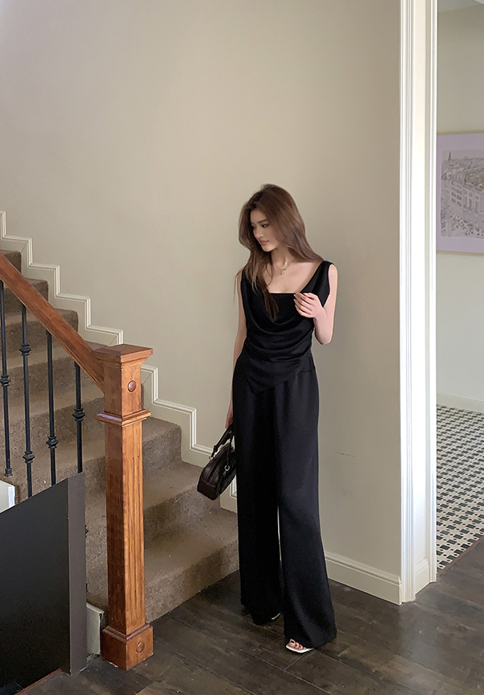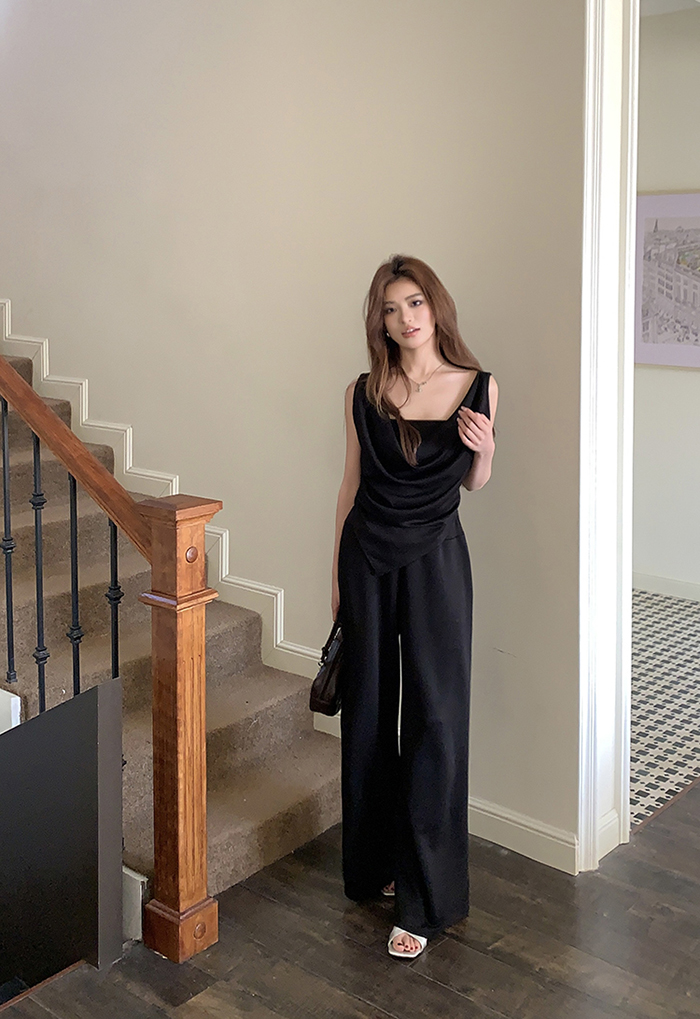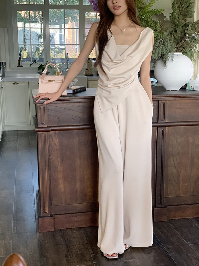 SIZE탑Free 55~66 : 가슴 88~ / 총길이 45~59 cm팬츠Free 55~66 : 허리(밴딩) 60~ / 총길이 97 cmFABRIC폴리, 코튼, 스판신축성보통 / 두께감보통 / 비침보통초반 드라이클리닝 권장