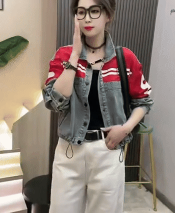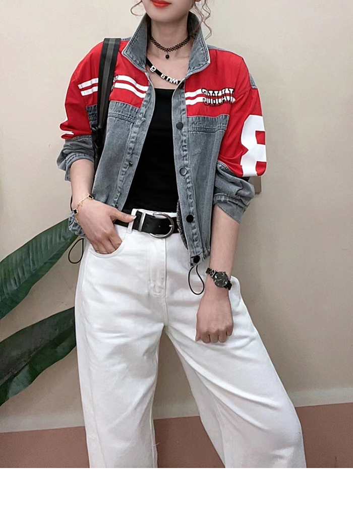 포미 배색 두줄 스트링 데님 청자켓