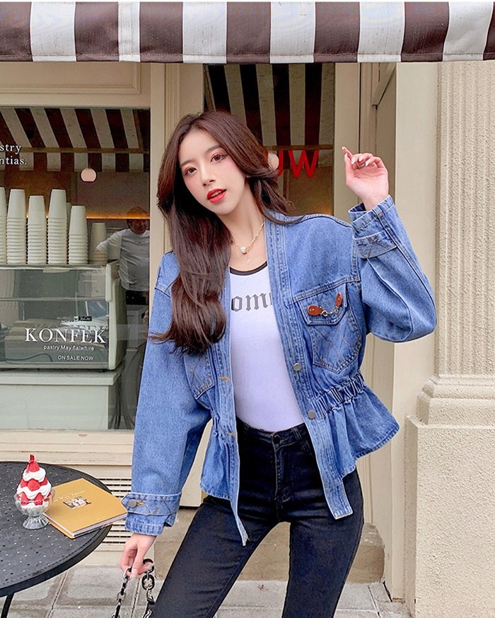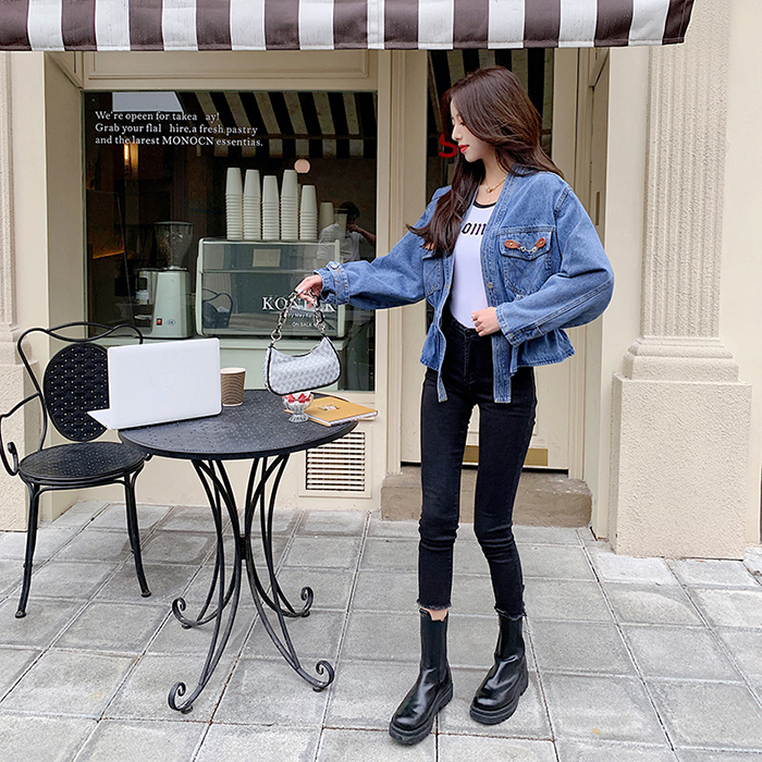 SIZEFree 55~날씬77 : 가슴 106 / 총길이 57 cmFABRIC데님신축성없음 / 두께감보통 / 비침없음초반 드라이클리닝 권장