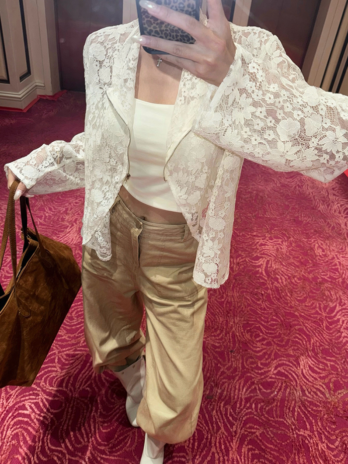 SIZEFree 55~날씬77 : 가슴 114 / 소매 69 / 총길이 56-50 cmFABRIC폴리, 나일론신축성없음 / 두께감얇음 / 비침있음초반 드라이클리닝 권장