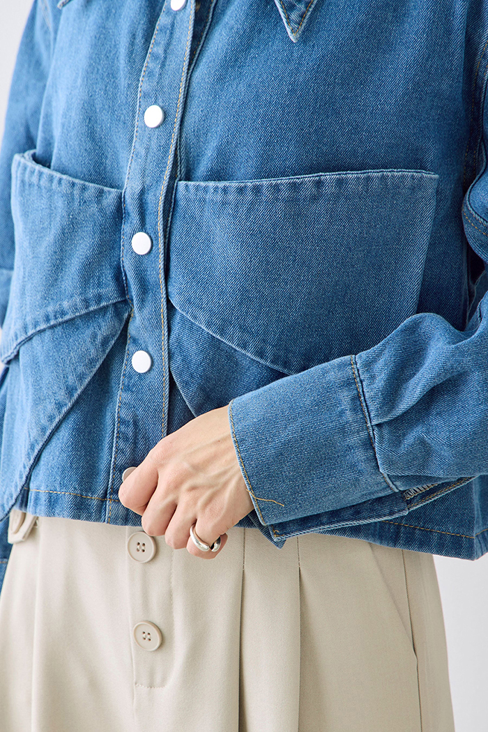 SIZEFree 55~날씬77 : 어깨 92 / 가슴 116 / 소매 55 / 총길이 47 cmFABRIC데님신축성없음 / 두께감보통 / 비침없음초반 드라이클리닝 권장