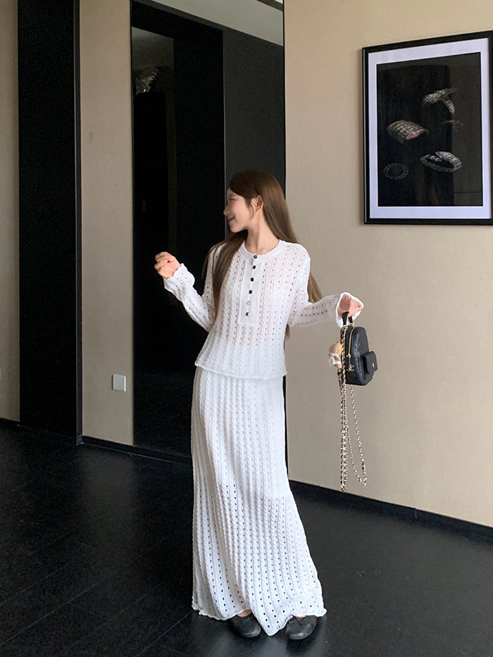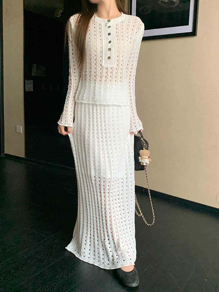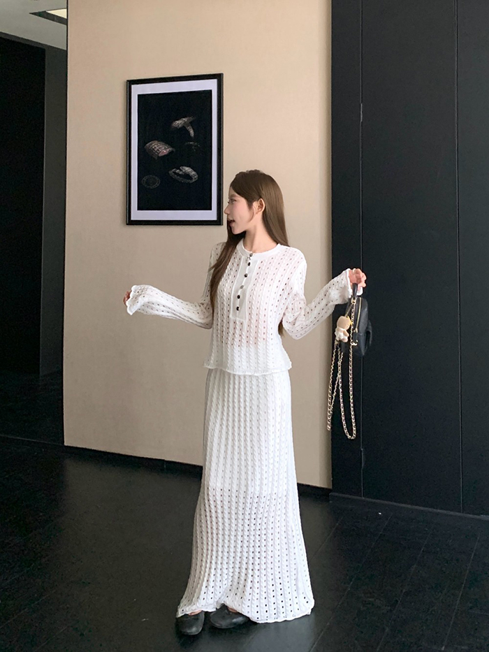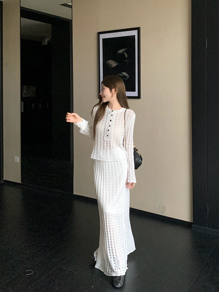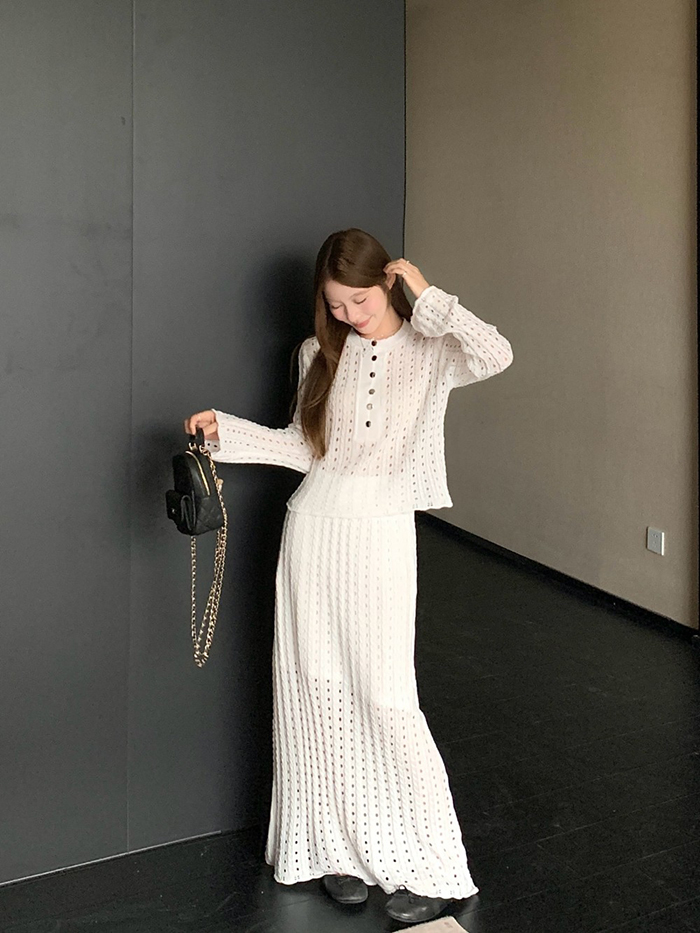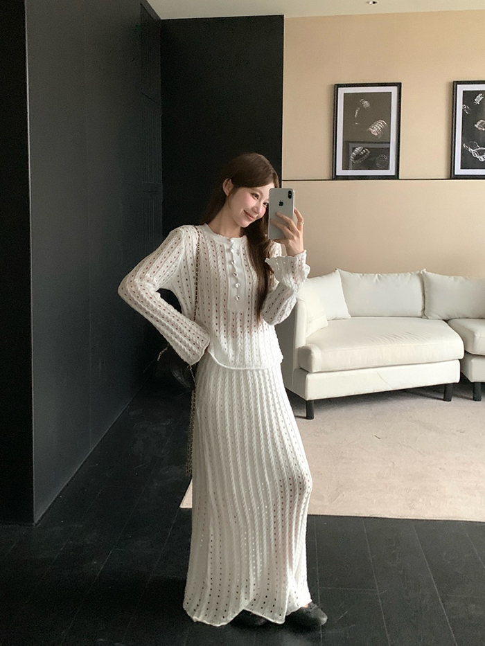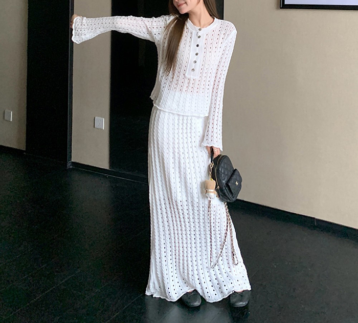 SIZE탑Free : 가슴 100~ / 총길이 52 cm스커트Free 55 : 허리(밴딩) 60~ / 총길이 98 cmFABRIC폴리, 스판신축성있음 / 두께감보통 / 비침있음초반 드라이클리닝 권장