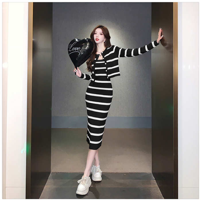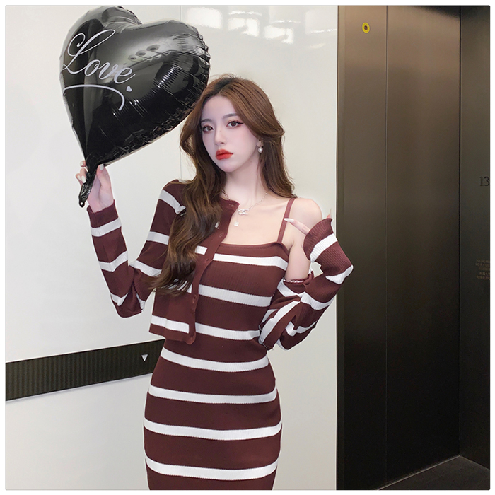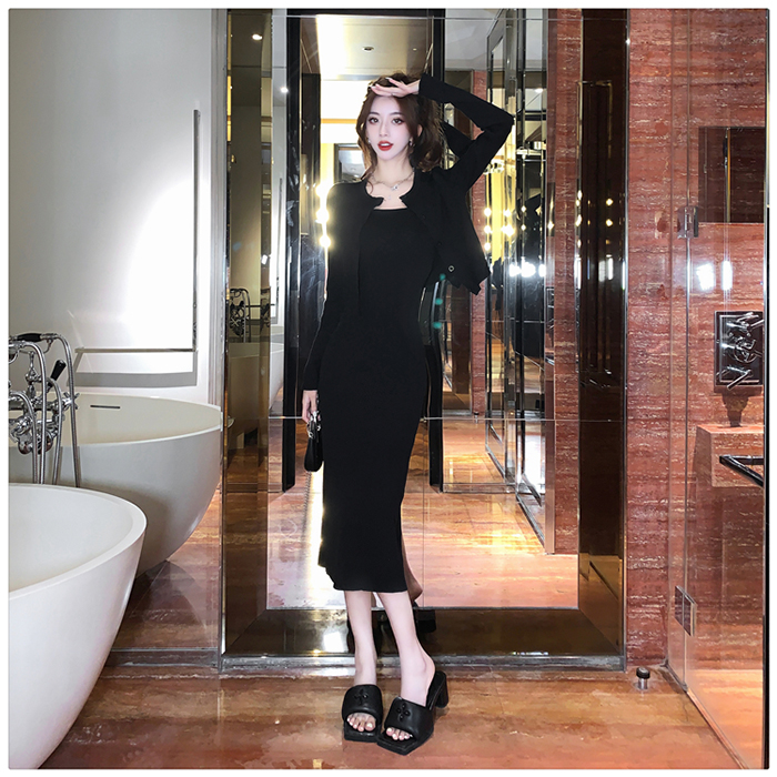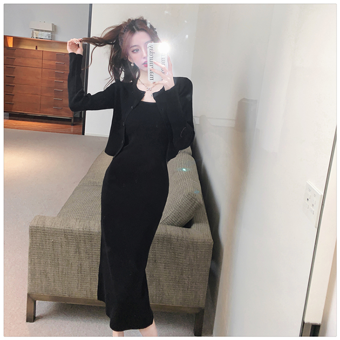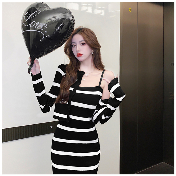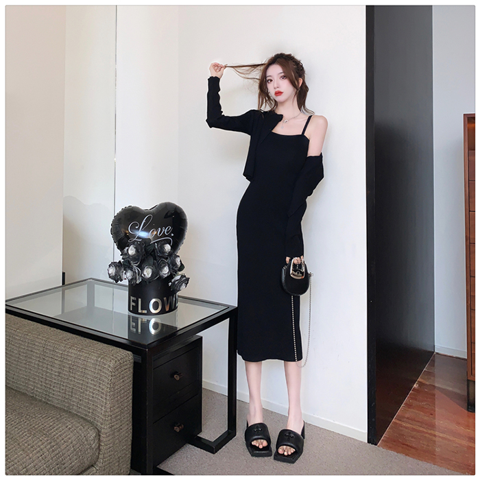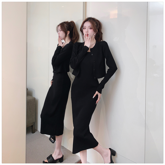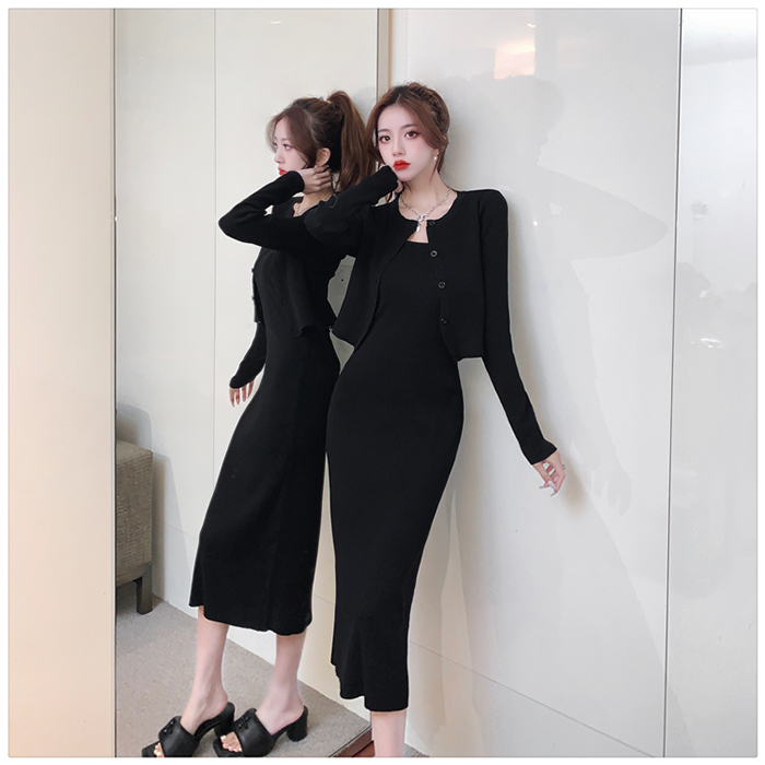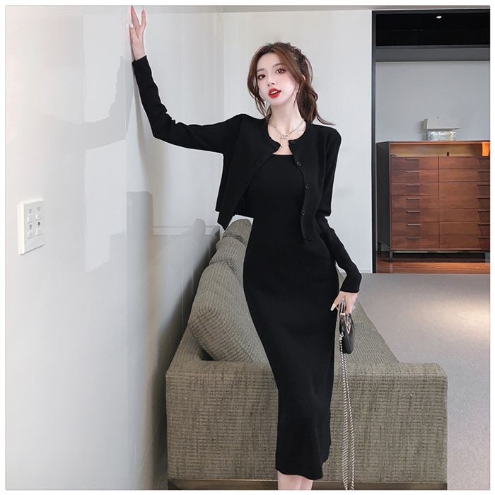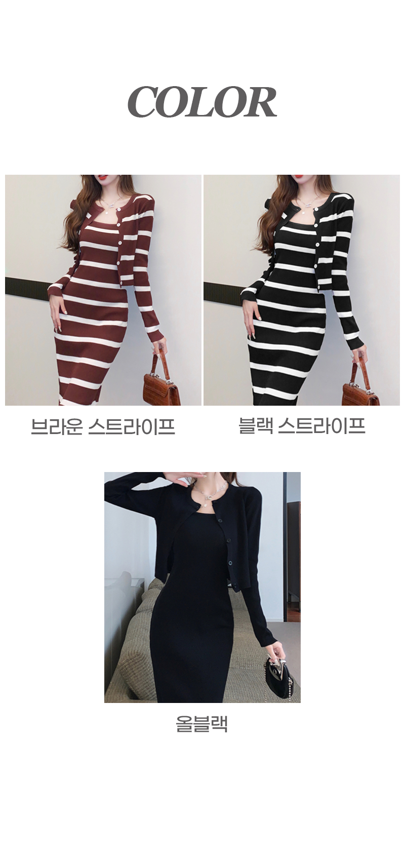 SIZE가디건L 55~66 : 가슴 76~ / 소매 55 / 총길이 41 cm원피스 L : 가슴 74~ / 총길이 108 cmFABRIC폴리, 스판신축성약간 / 두께감보통 / 비침없음초반 드라이클리닝 권장