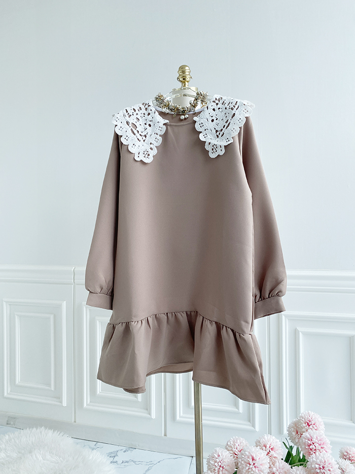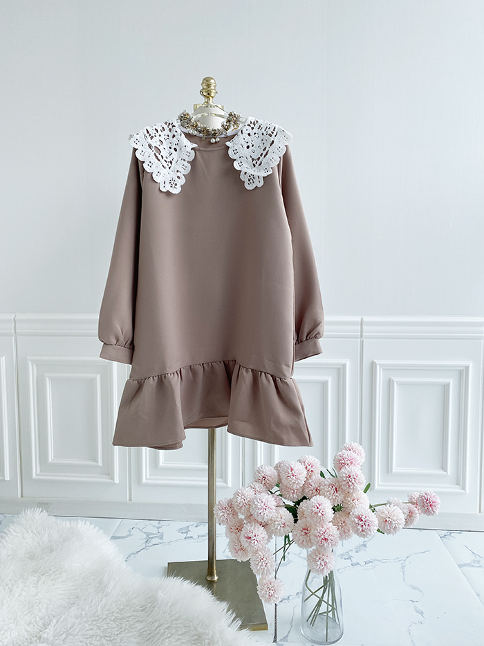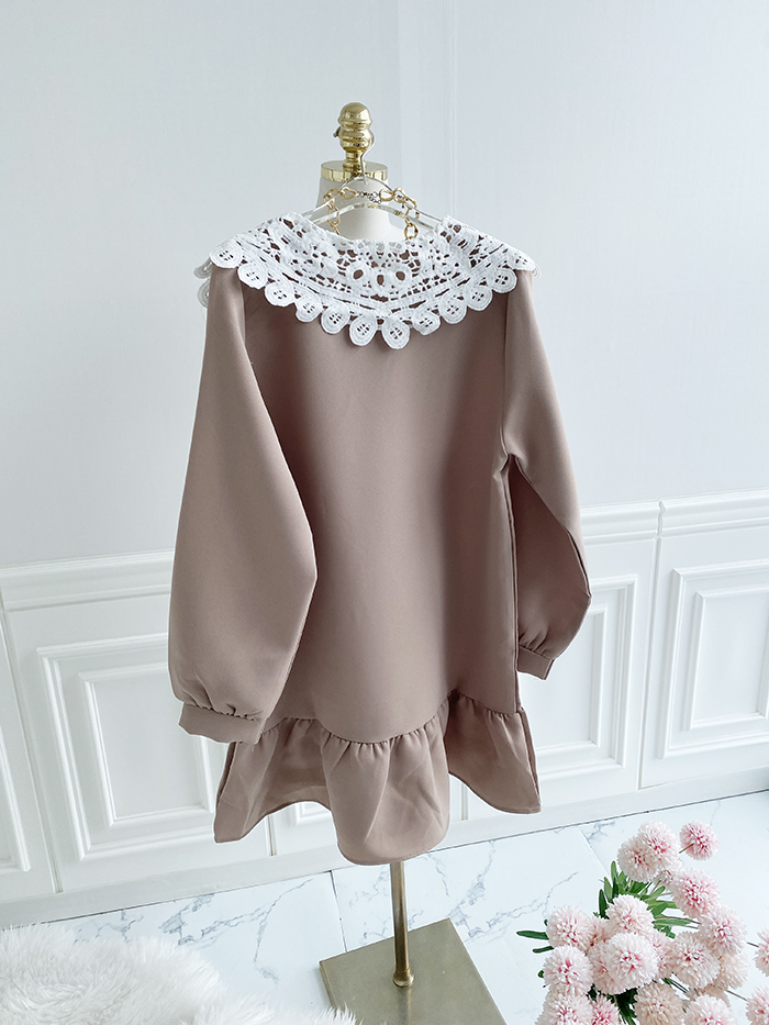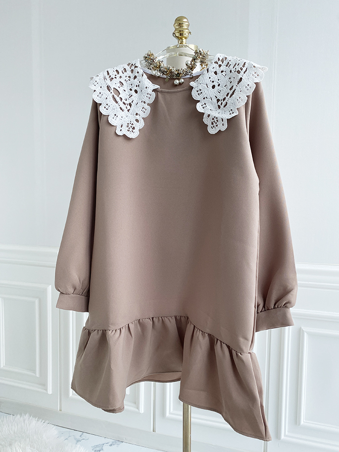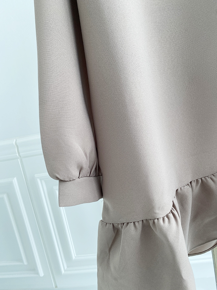 SIZEFree 55~77 : 가슴 104/ 총길이 85 cmFABRIC폴리신축성보통 / 두께감보통 / 비침없음초반 드라이클리닝 권장