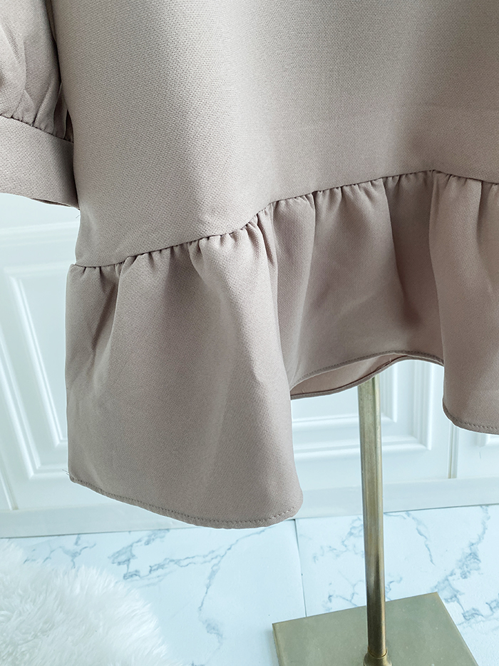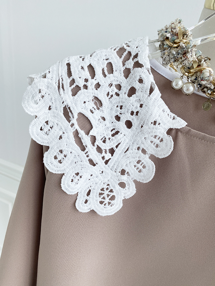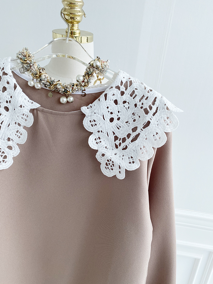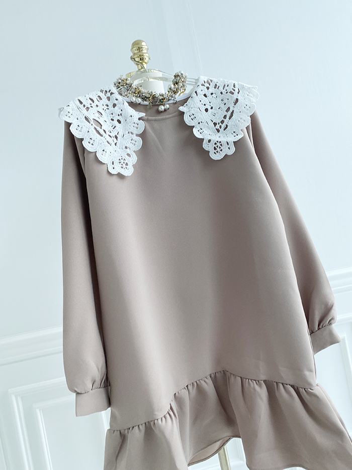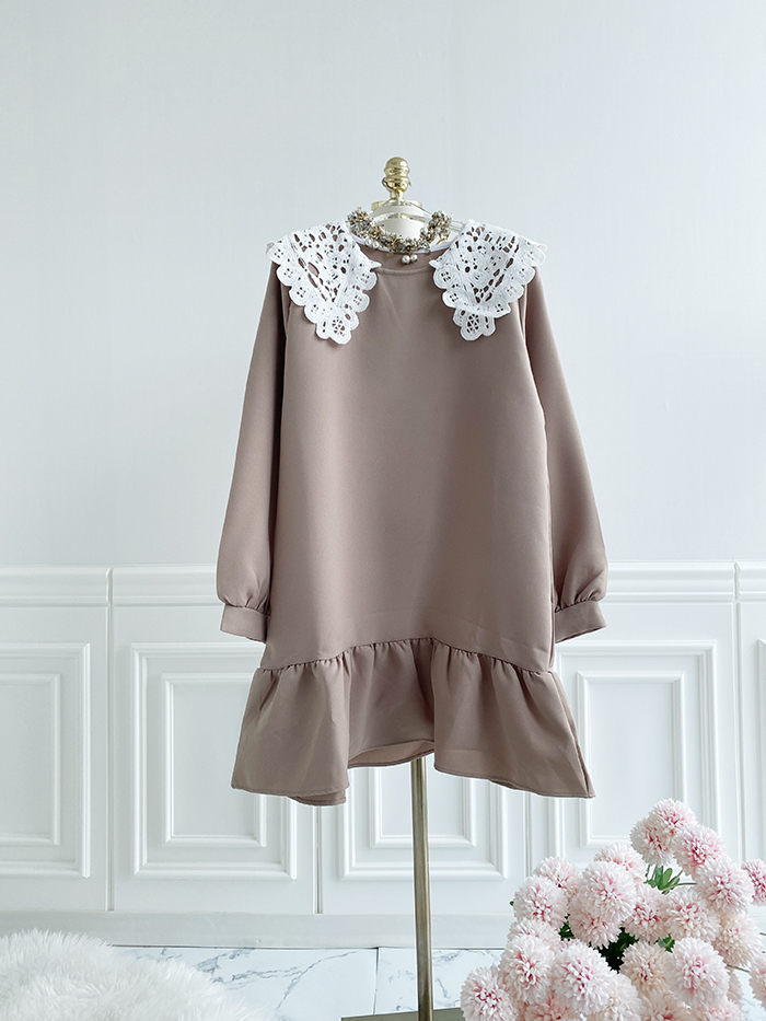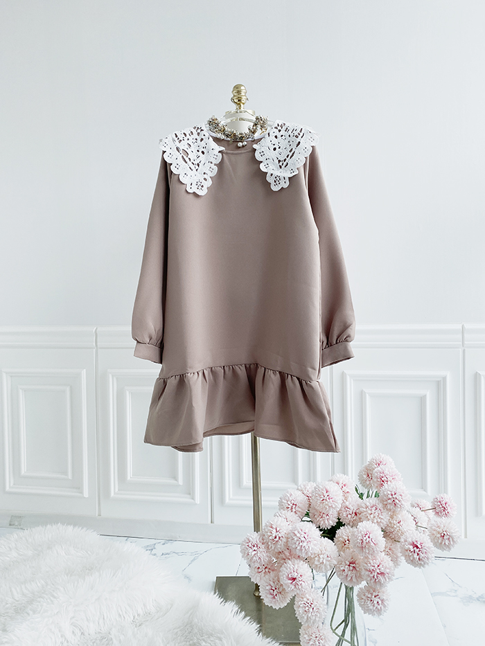SIZEFree 55~77 : 가슴 104/ 총길이 85 cmFABRIC폴리신축성보통 / 두께감보통 / 비침없음초반 드라이클리닝 권장