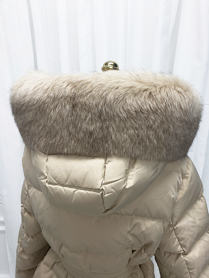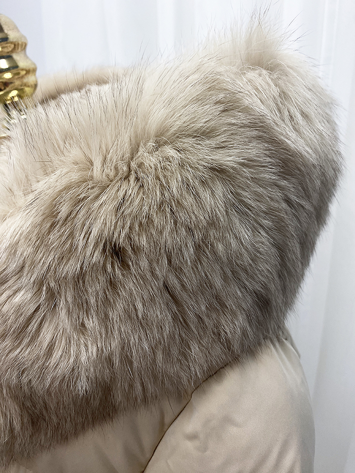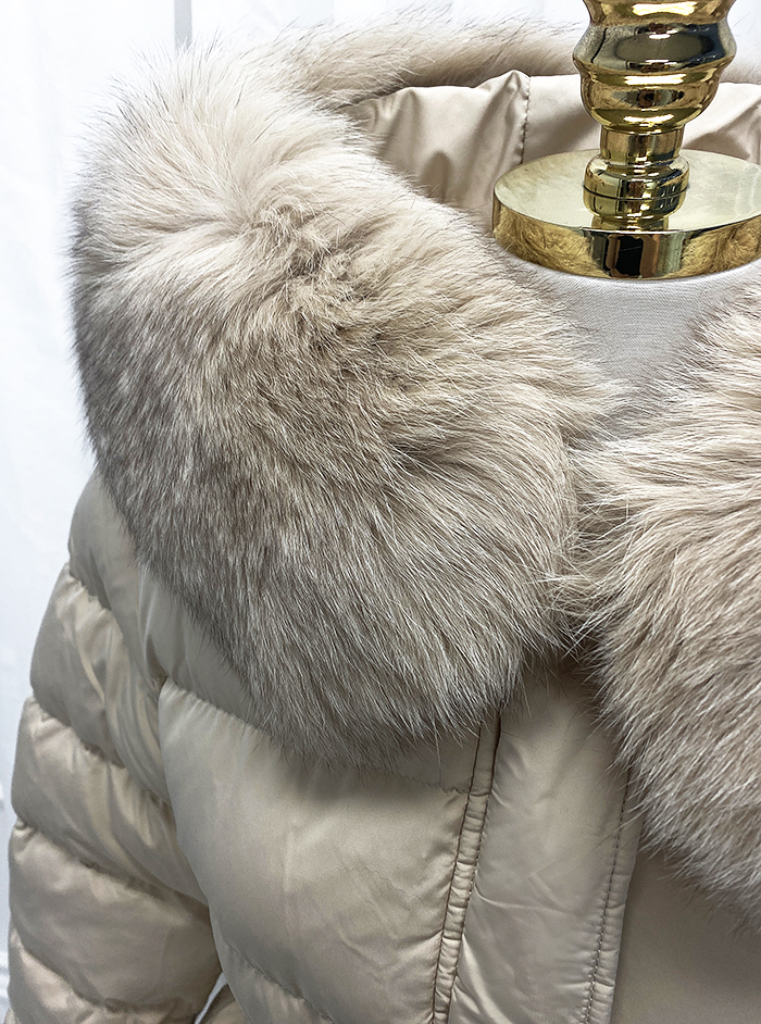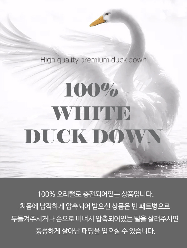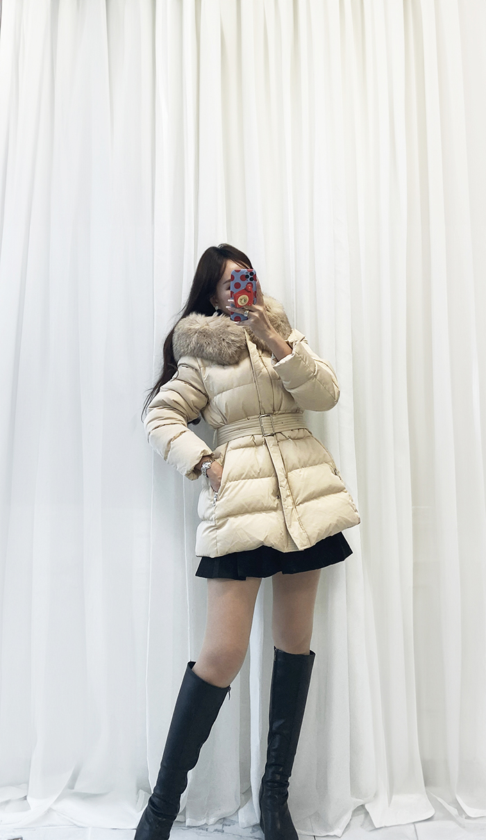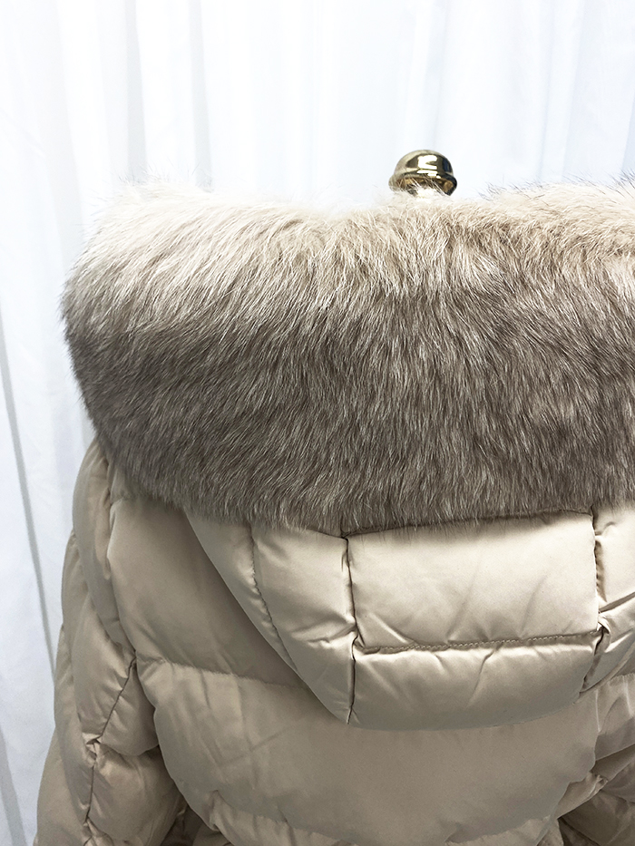 겉감 - 폴리 / 충전재 - 오리깃털 100% / 모자퍼 - 폭스 100%