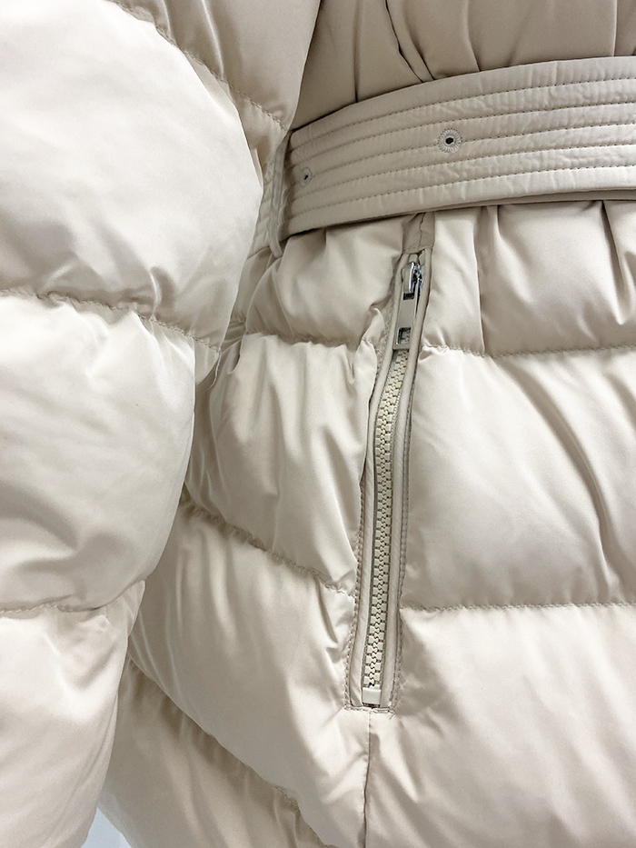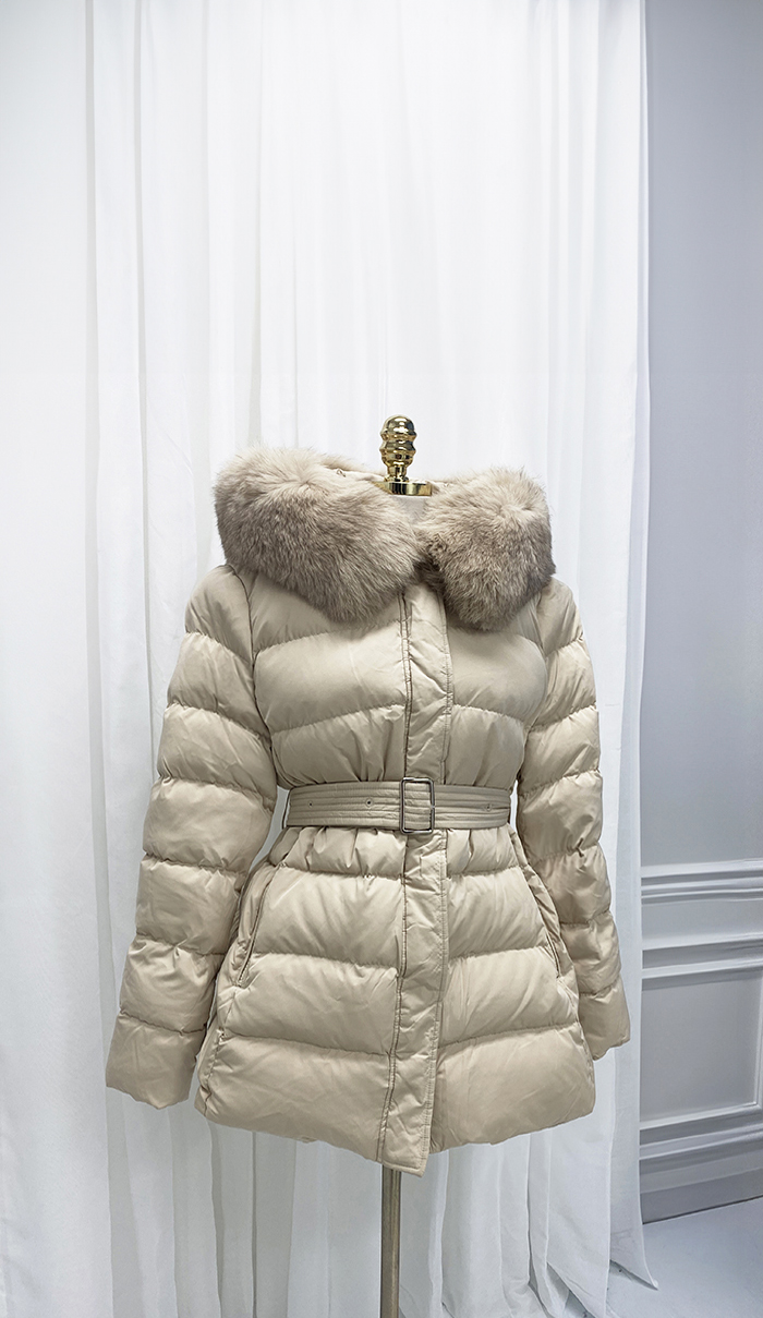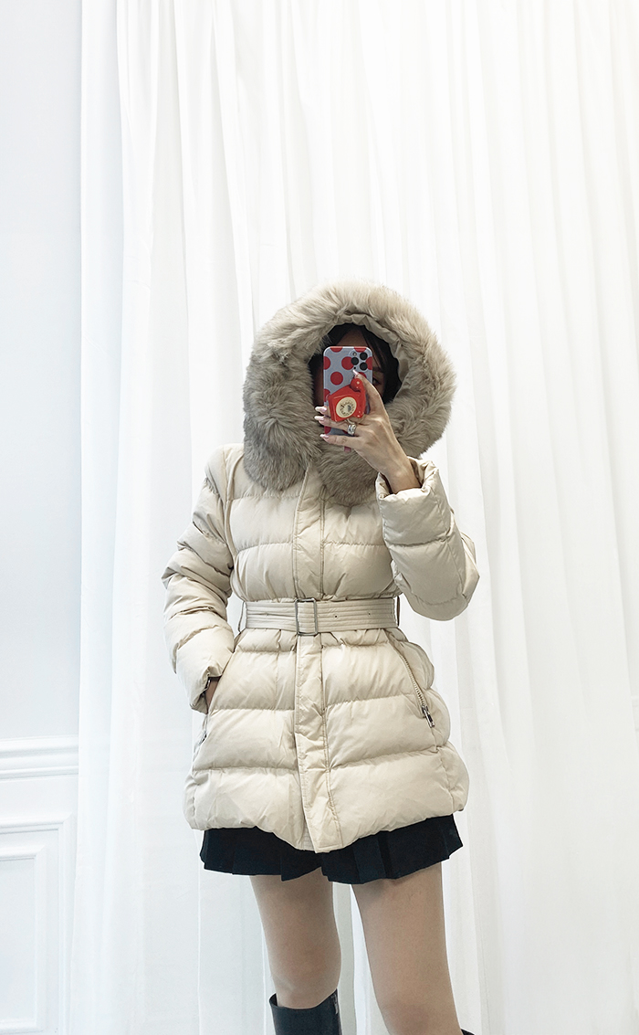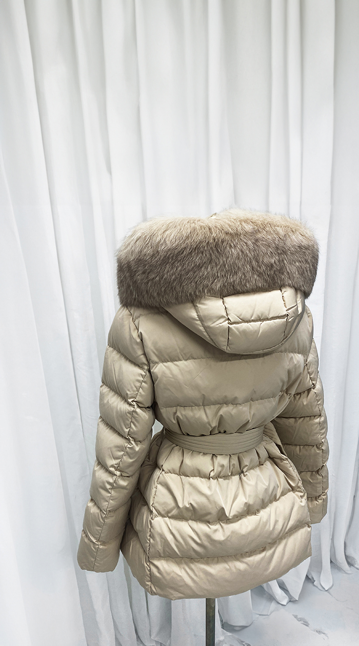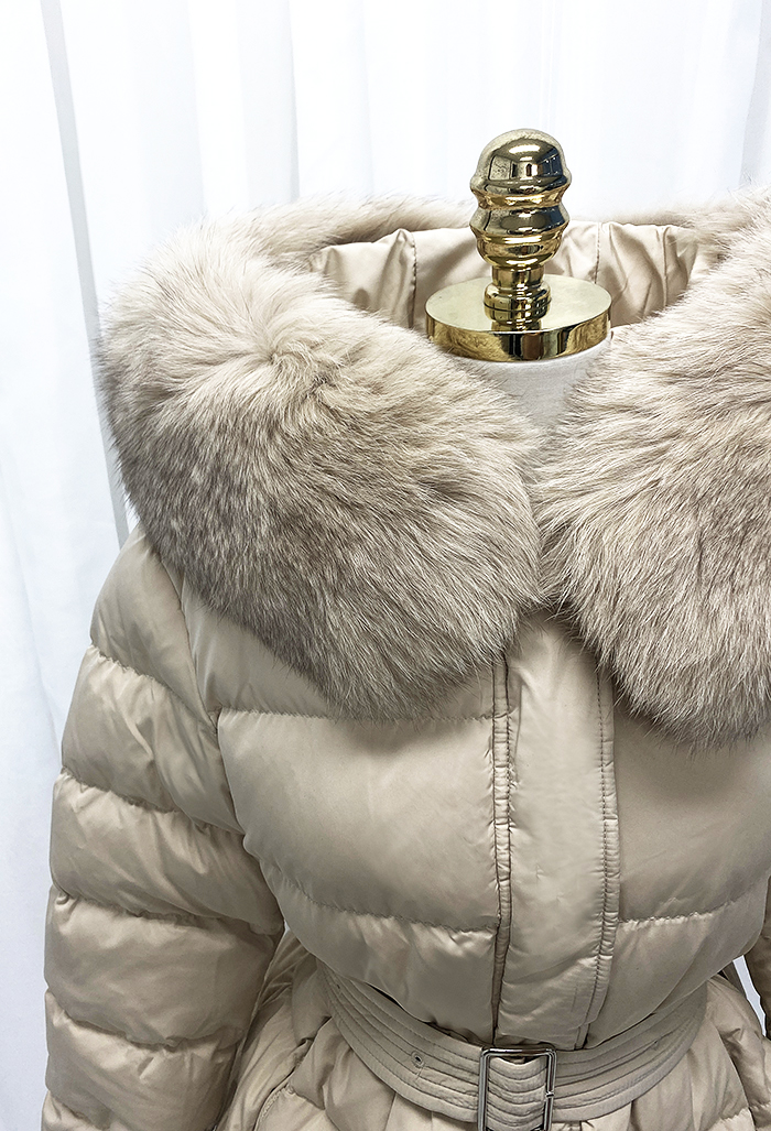 겉감 - 폴리 / 충전재 - 오리깃털 100% / 모자퍼 - 폭스 100%