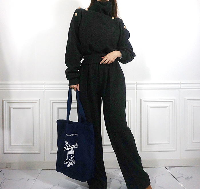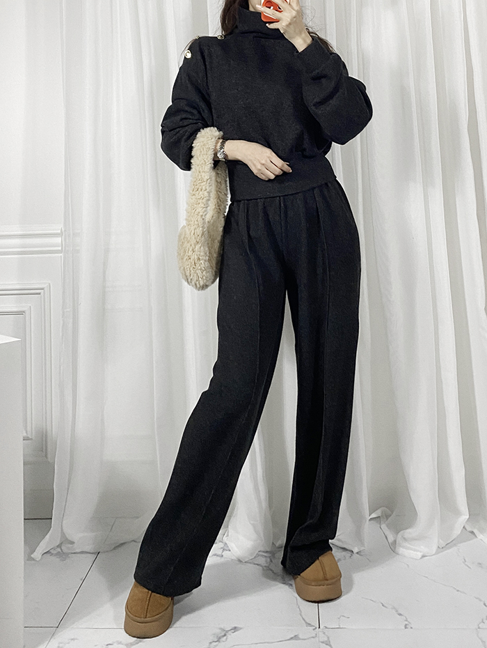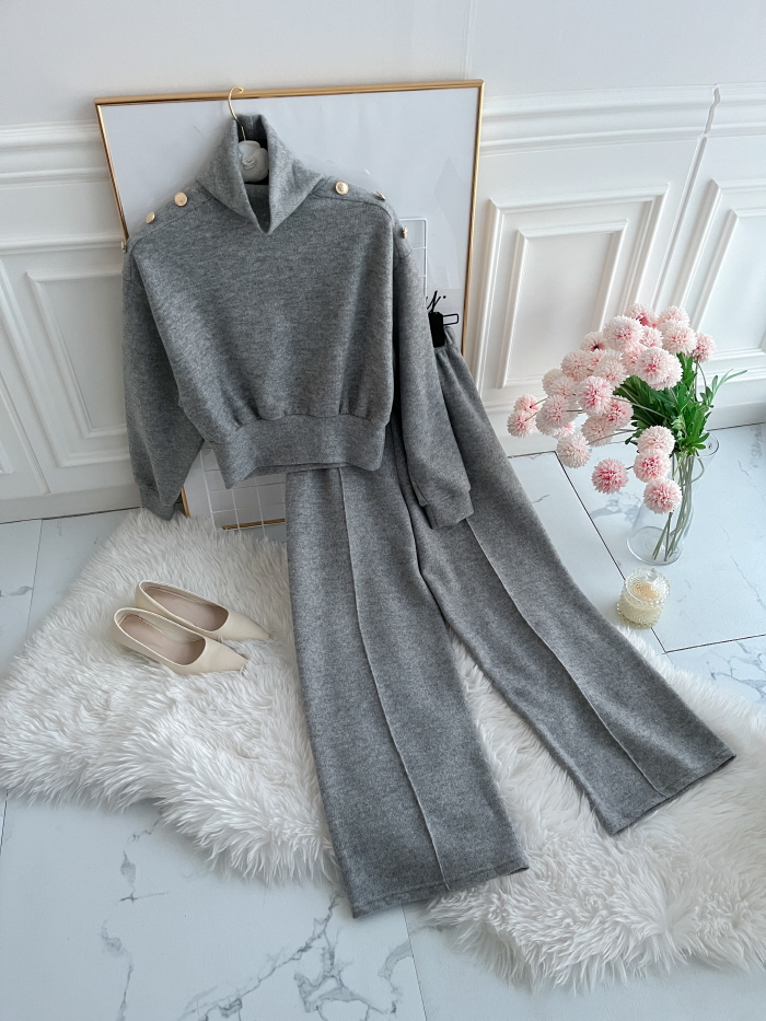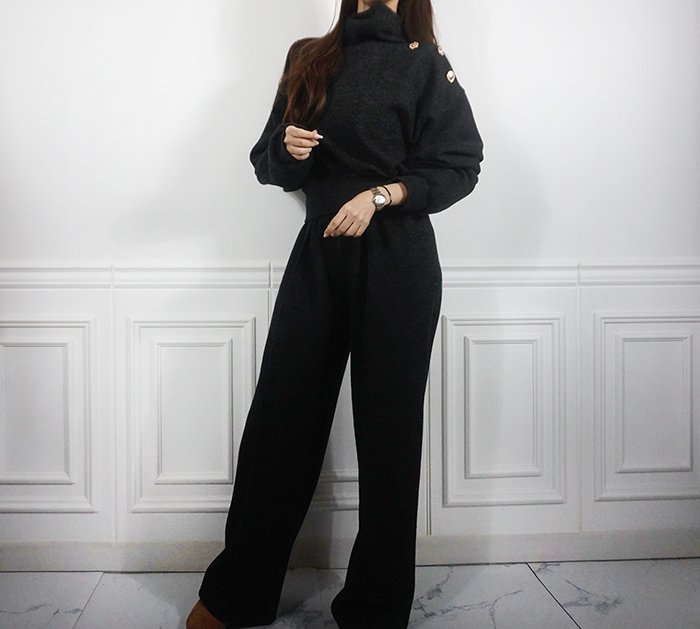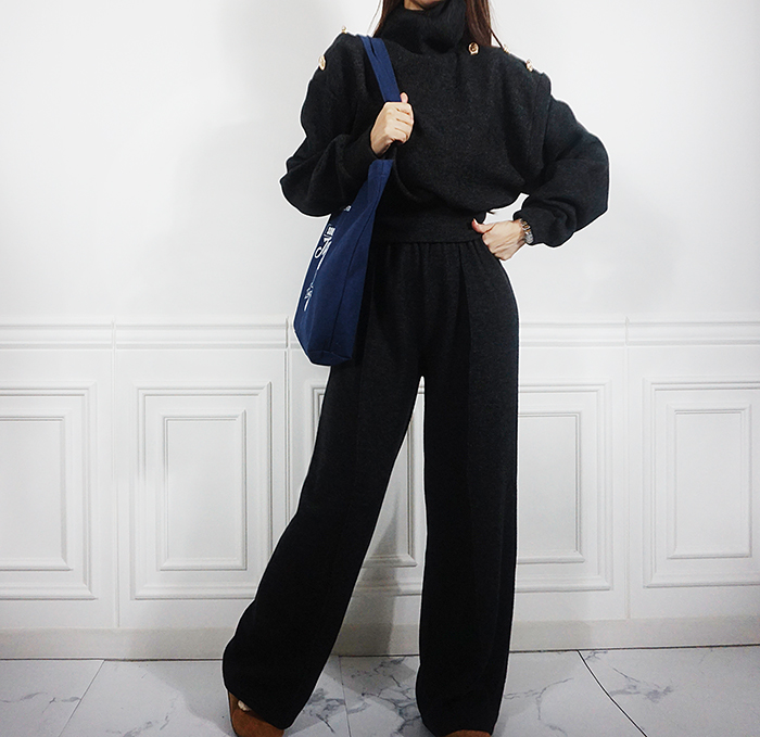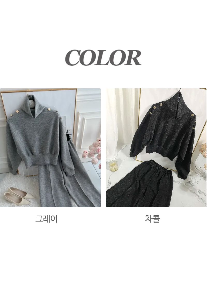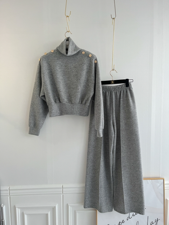 SIZE (둘레)탑Free : 어깨 104 / 가슴 102 / 소매 57 / 총길이 56 cm팬츠Free : 허리(밴딩) 56~ / 힙 104 / 총길이 104 cmFABRIC폴리 95%, 스판 5%신축성보통 / 두께감보통 / 비침없음드라이클리닝 권장
