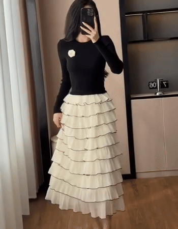 세라 골지탑 투피스 같은 캉캉 원피스