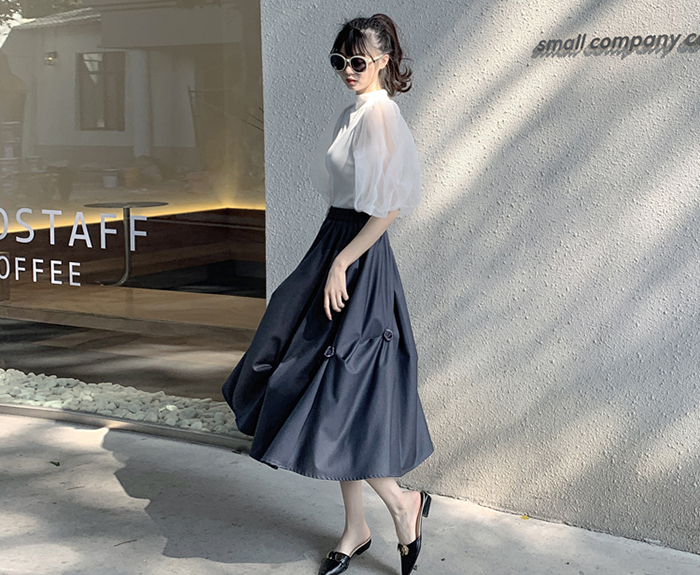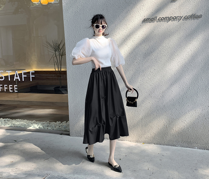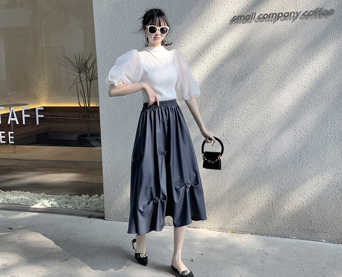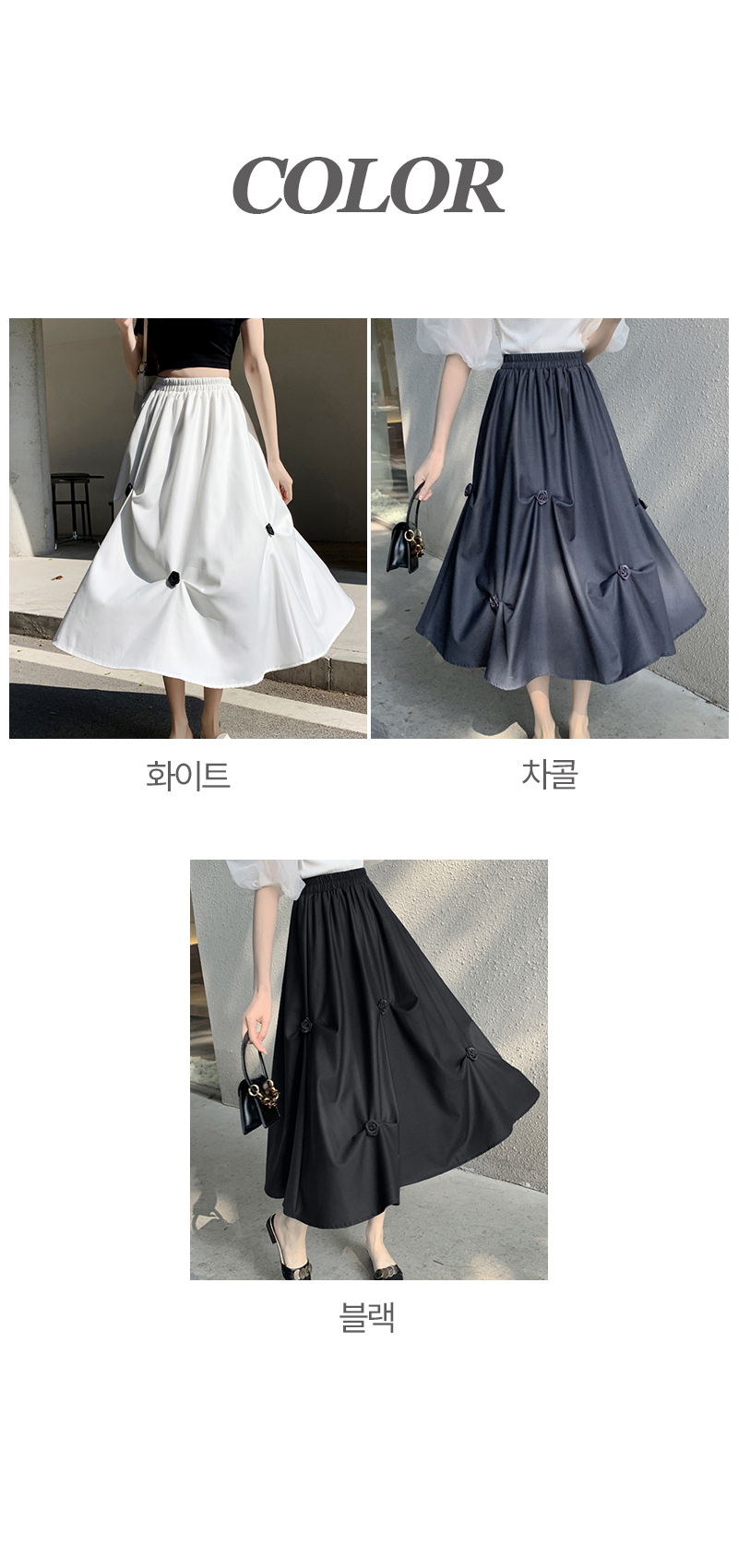 SIZEFree : 허리(밴딩) 60~ / 총길이 75 cmFABRIC폴리신축성보통 / 두께감보통 / 비침없음초반 드라이클리닝 권장