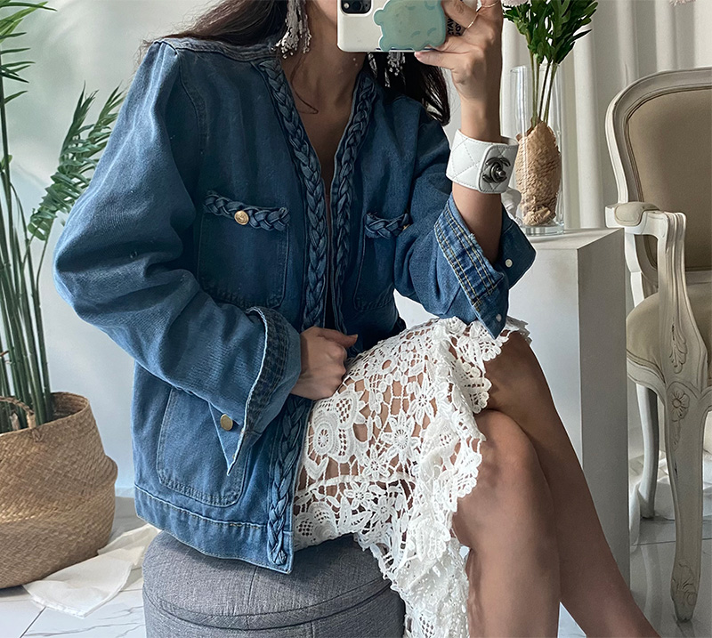 골드너 꼬임장식 데님 자켓