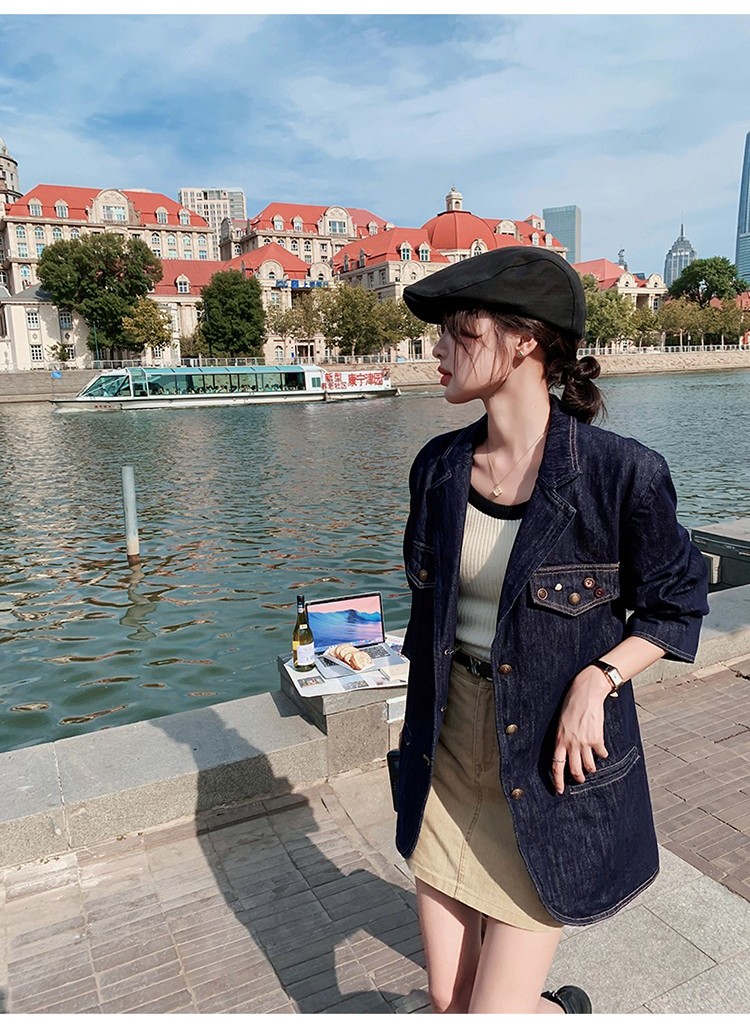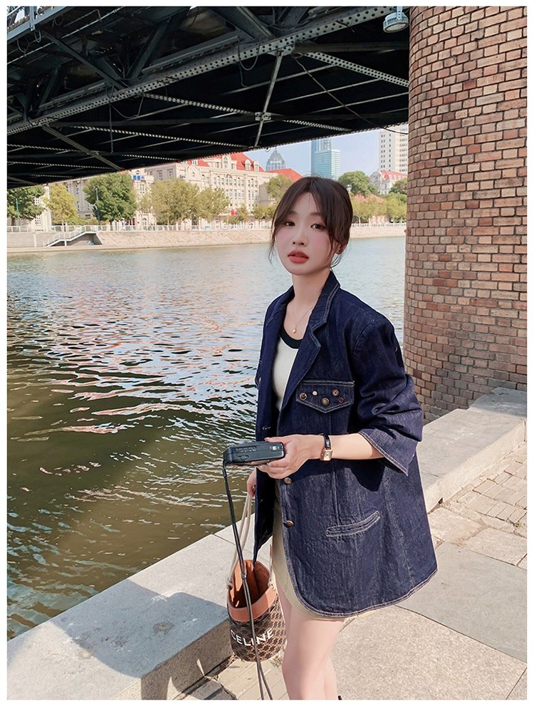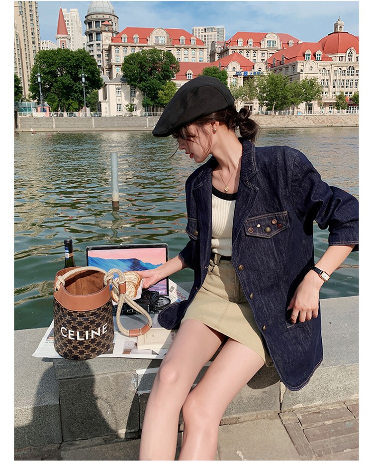FABRIC코튼, 데님신축성없음 / 비침없음 / 두께감보통초반 드라이클리닝 권장 SIZEL 55~66 : 가슴 96 / 총길이 70 cm2XL 77~88 : 가슴 102 / 총길이 71 cm
