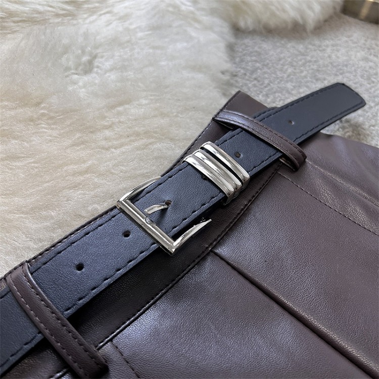 SIZEM : 허리 68 / 총길이 90 cmL : 허리 72 / 총길이 91 cmXL : 허리 76 / 총길이 91 cmFABRIC폴리에스테르, PU신축성없음 / 두께감약간 / 비침없음드라이클리닝 권장