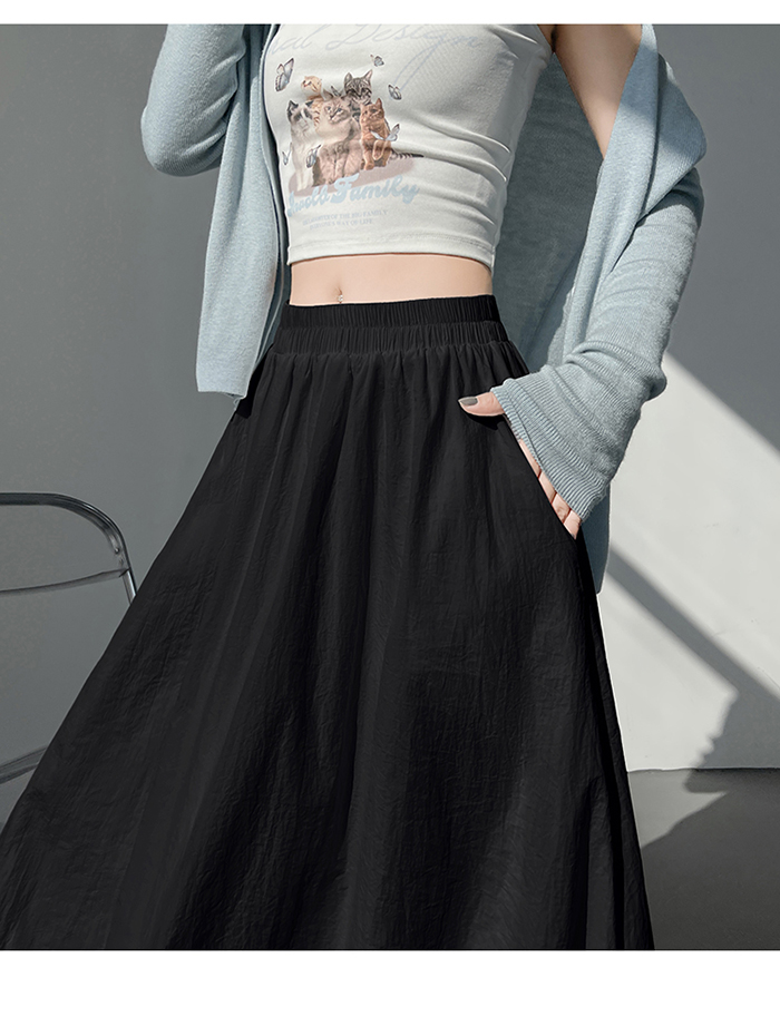 SIZEFree 55~날씬77 : 허리 68~92/ 총길이 82 cmFABRIC폴리신축성보통 / 두께감보통 / 비침없음초반 드라이클리닝 권장