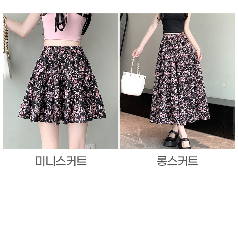 Free 55~날씬77 : 허리(밴딩) 62~ / 미니스커트 총길이 40 / 롱스커트 총길이 85 cm