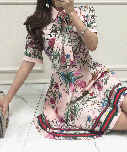 클랑 세일러카라 꽃자수 원피스 - 빅사이즈 2XL입고