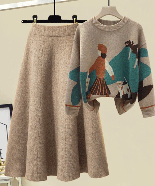 무료배송 / 산책걸 니트 투피스 세트 4XL까지