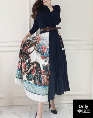 무료배송 / 몬테로 노블 일러스트 골지니트 패턴 롱원피스