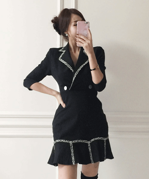 럭스 샤 프린지 카라 오피스 원피스