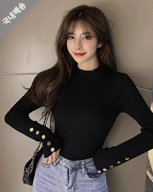 나리스 버튼장식 골지 베이직 니트탑 3컬러