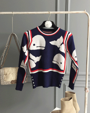 [국내배송] 모비딕 패턴 레드 배색 니트