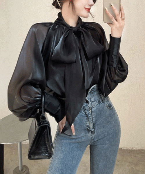 아미스 빅리본 시스루 볼륨 공주 블라우스