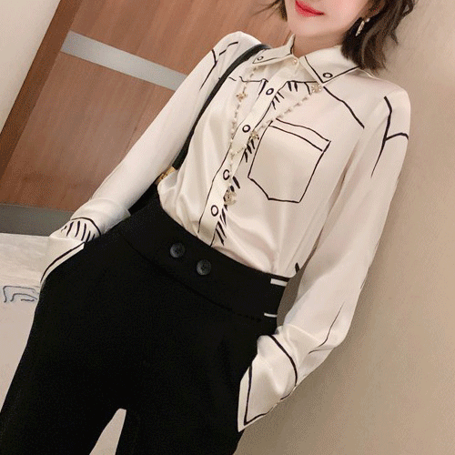 미세하자특가 / 푸치니 스케치 루즈핏 셔츠 블라우스