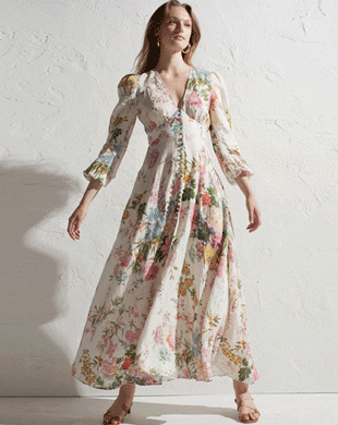 무료배송 / 짐머 로얄플라워 딥 브이넥 콩단추 롱원피스
