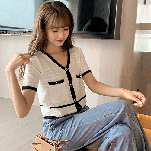 국내배송 / 아미앵 클래식 배색 써머 가디건