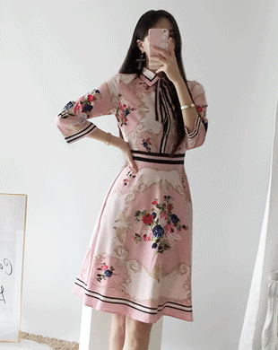 보닉 로즈가든 타이 핑크 원피스