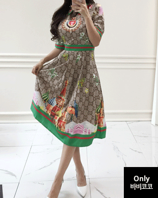 [2XL까지] 부다페스트 명품 로고 플레어 원피스