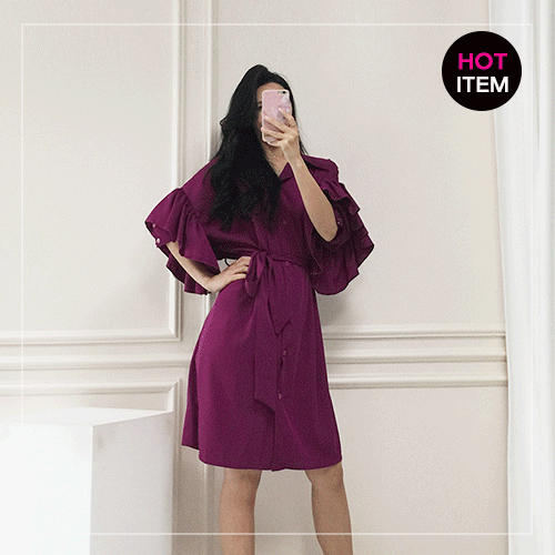 아르노 프릴 볼륨소매 루즈핏 셔츠 원피스