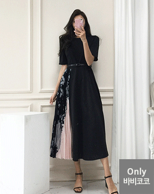 무료배송 / 비비아나 플리츠 배색 벨트 롱원피스 3XL까지