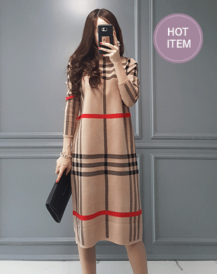 국내배송 / 그리아 루즈핏 체크 니트 원피스