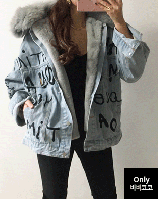 무료배송 / 디메르 리얼 폭스퍼 밍크안감 데님 자켓