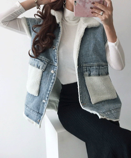 린제이 양털 데님 조끼