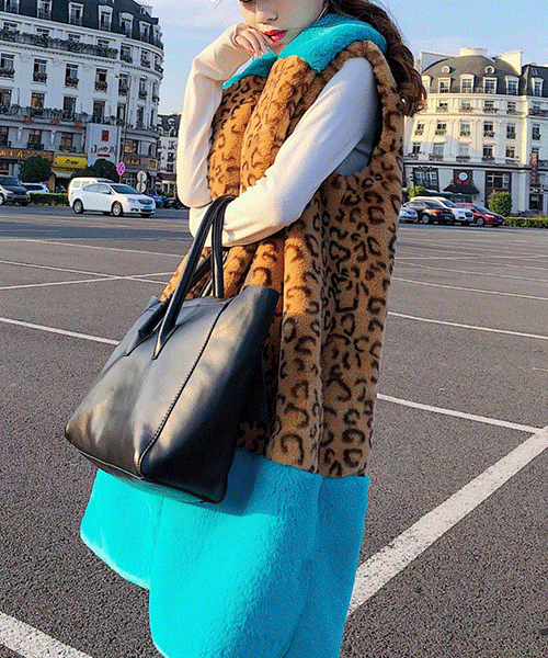 나탈리 비비드 호피 밍크퍼 롱 조끼