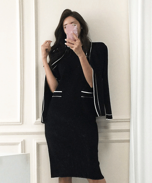 Set - 피에르 심플 니트 가디건 원피스 세트