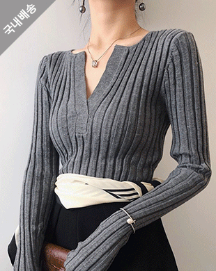 [국내배송] 마젤 브이넥 골지 기본 니트 티셔츠