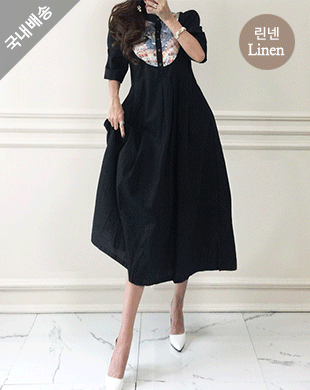 무료배송 / 알버타 버튼 오버핏 린넨 롱원피스 99사이즈까지