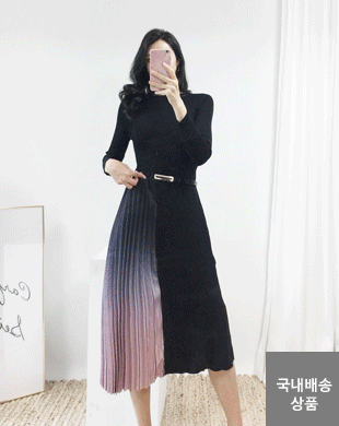 무료배송 / 에르고 플리츠 니트 레이어드 롱원피스