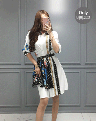빅토리아 블랙 마블패턴 롱 랩원피스 2XL까지