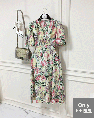 마르세유 로즈가든 브이넥 밴딩 롱원피스