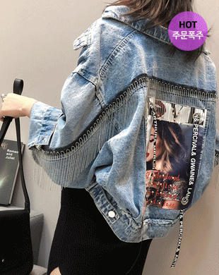 무료배송 / 러브 매거진 백 수술장식 데님 자켓