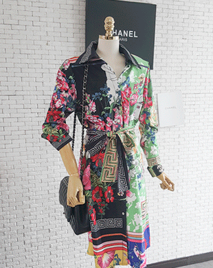 [바비코코단독] 카루셀 아트그래픽 블라우스 투피스