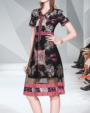 [2XL까지] 샤르트 들꽃 리본 플레어 원피스