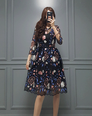 - [2XL까지] 콜린 시스루 로즈 자수 원피스 / 명품수입보세, 돌잔치원피스, 99사이즈원피스, 맘드레스, 청담동며느리, 모임룩, 40대원피스, 빅사이즈, 미시원피스, 수입여성의류, 모임룩, 중년여성원피스, 연말원피스